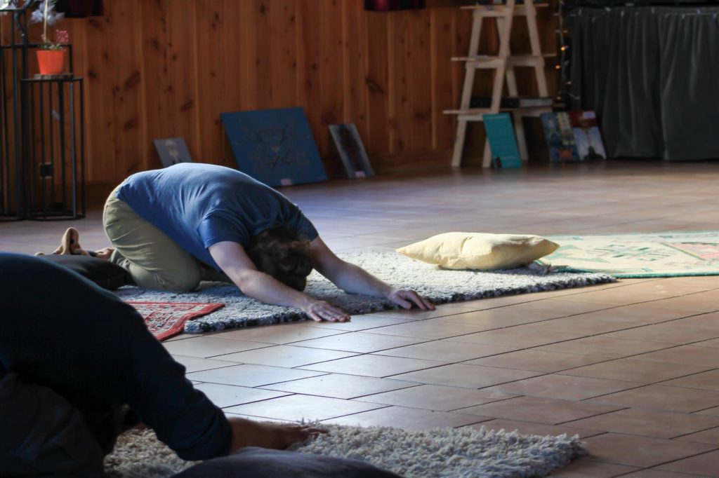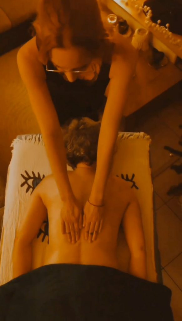Certain·e·s rejoignent Bernard pour une séance de yoga dans le théâtre, d’autres Gilles pour un soin taïwanais individuel, ou encore Sarah pour un atelier d’art-thérapie qui s’étale sur deux heures. Natacha propose un atelier d’astrologie psycho-corporelle en petit groupe, tandis qu’Ô-rélie, Bernard, Gilles et d’autres praticien·ne·s proposent des massages bien-être tout au long de la journée, chacun·e avec sa spécialité.