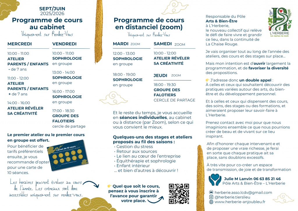 J’ai appris, intégré et développé des approches qui aident au nettoyage et à la libération des blocages intérieurs.